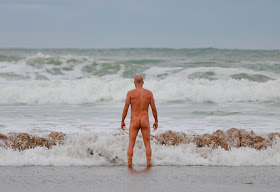 El Sr. Luft y yo entramos en una pequeña habitación en una esquina de la exposición donde el Sr. Beloufa estaba exhibiendo un video de propaganda iraní del Museo de la Defensa Sagrada en Teherán que mostraba una simulación de un ataque con bomba en un mercado. Me sentí insensible ver un video de una atrocidad (aunque sea una puesta en escena) mientras estaba parado en nada más que en mis zapatillas, pero el Sr. Luft lo vio de manera diferente. En su opinión, la exposición confirmó su creencia de que la desnudez era un gran ecualizador social y político. "Si los líderes mundiales tuvieran sus reuniones desnudos", dijo, "se mantendrían mucho más tranquilos".